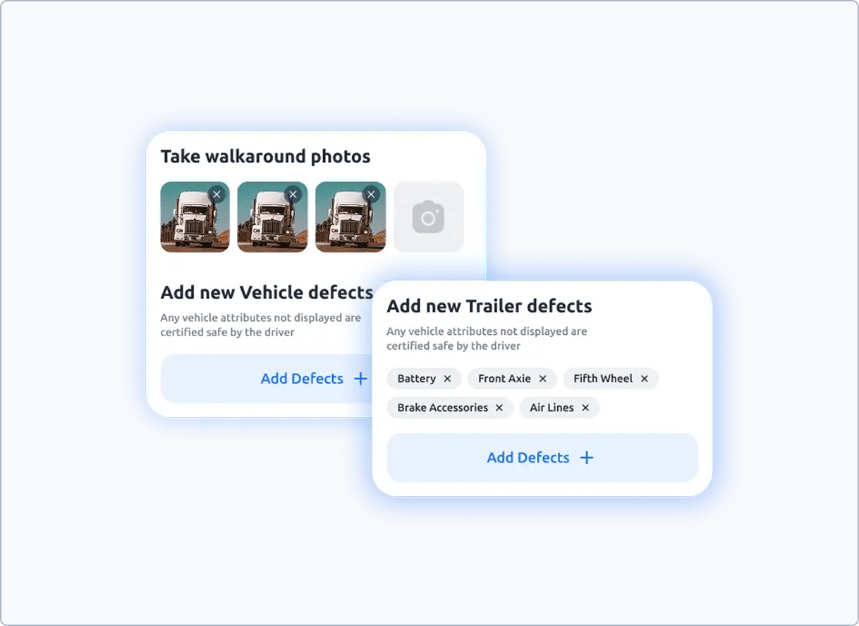 Quickly record vehicle or trailer defects using photos via mobile. Automatically notify fleet managers so repairs happen faster and downtime is minimized.